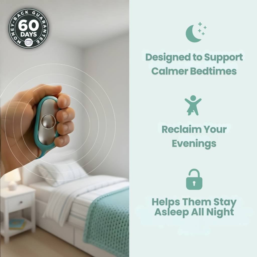"Wife showed me this thing, i thought great another instagram scam targeting desperate parents... but after 6 months of our 5yo son taking 3+ hours to fall asleep every single night we were literally at divorce level fights from exhaustion so what the hell right. Thing actually works - not gonna lie it took him a few days to get used to the feeling (he said it tickles) but now he asks for his 'sleepy zapper' at bedtime. biggest change? he's not scared anymore, used to spiral about robbers/monsters/whatever and now he holds this thing and just... chills. stopped the midnight wake ups too which is HUGE, went from 3-4x a night to maybe once a week. only complaint is wished they had a better manual but figured it out, basically just turn it on and let them hold it while they fall asleep, don't overthink it"