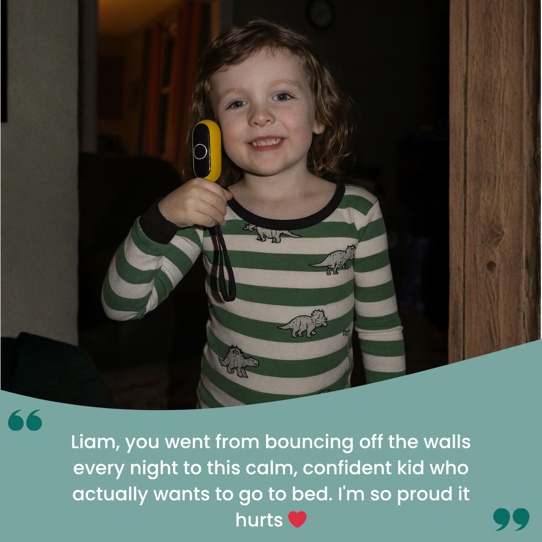 What used to be a 2-hour exhausting battle every night is now my 6-year-old saying 'Mom, I'm a big kid now' as she grabs her Calm Palm and puts herself to sleep. I'm literally in tears writing this.