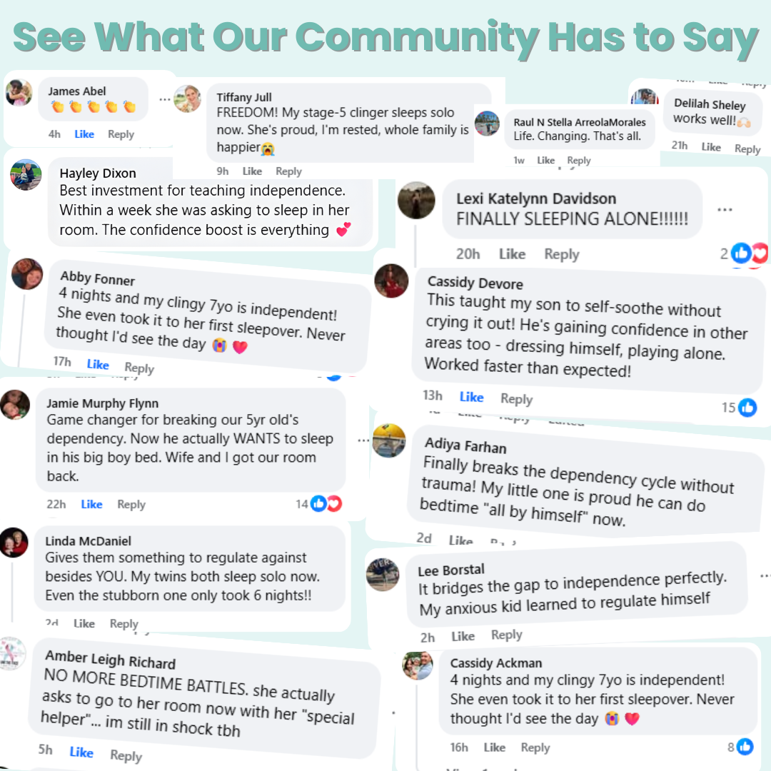 Join thousands who've gone from 2-hour bedtime battles and anxious meltdowns to peaceful, independent sleepers in just days.
